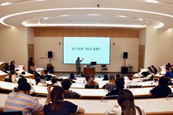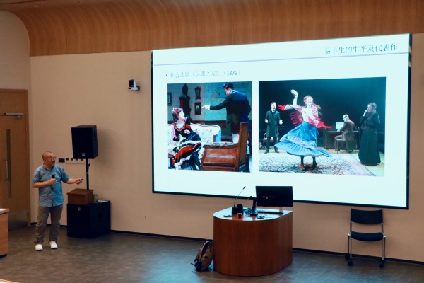 王磊教授从同时期欧洲社会历史大事件切入,通过分析《培尔·金特》等一系列经典作品,探究了易卜生深受时代影响的创作思想及其批判现实主义作品的深刻底层逻辑。他提出“戏剧是最富哲学意蕴的艺术,是问题的艺术”的艺术思想。王磊教授还展示了当代戏剧艺术家对《培尔·金特》二次创作的优秀戏剧演出作品,给同学们带来更多的艺术享受和思考空间。