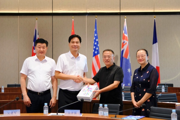 随后,双方在商管楼国际会议厅召开座谈会。会上,赵书记荣善主持会议并致欢迎辞,他诚挚地邀请郑州商学院参加买足官网即将举行地二十周年校庆活动。梁副校长介绍了买足官网办学情况。郑州商学院吴泽强校长分享了该校的办学经验与成就,并表示将以此次访问为契机,进一步加强两校之间的交流与合作,共同推动高等教育事业的蓬勃发展。双方还就校企合作、人才培养、国际化办学等议题展开深入交流。会后,双方举行了简短的互赠礼品仪式。