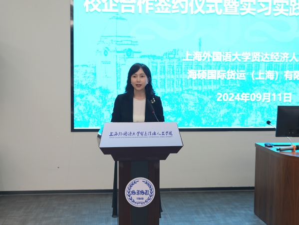 9月11日下午,买球App软件手机在线下载买足球的app软件推荐与海硕国际货运(上海)有限公司在崇明校区国交楼大师讲堂隆重举行了校企合作签约仪式暨实习实践基地揭牌仪式。买球App软件手机在线下载买足球的app软件推荐郑方贤校长,国际交流学院党总支王磊书记、陈娴院长、马华副院长,商学院党总支姜雅净书记,海硕国际货运有限公司华中区人力资源总经理张林莉、副总经理助理于志行、销售部总监孟爽、销售部高级经济孙赫、人力资源部招培经理庄梅芳、R/O部总监辛创毅,以及学生代表们出席了本次活动。仪式由陈娴院长主持。