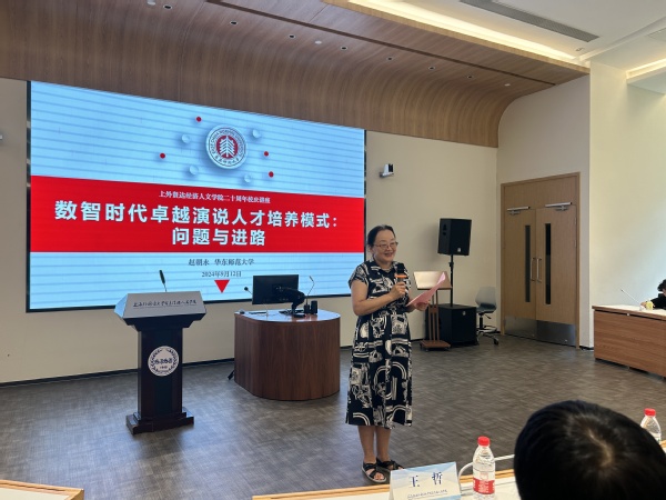 梁副校长在致辞中指出,语言是思想的外显,良好的口头表达能力是个人的价值体现。赵教授的讲座可以在训练演说能力方面给予同学们方法论的指导,帮助同学们审视和设计未来。她希望在场同学能够认真聆听讲座,为未来成为卓越的具有国际跨文化交流能力的人才打下基础。