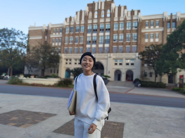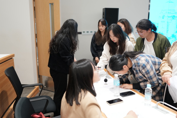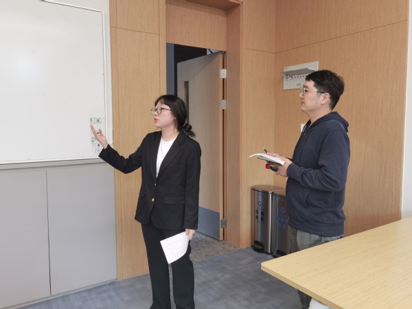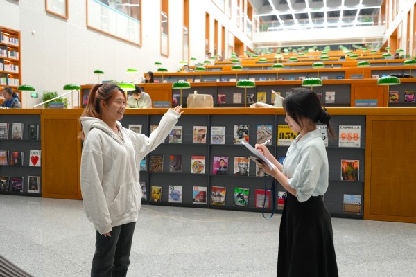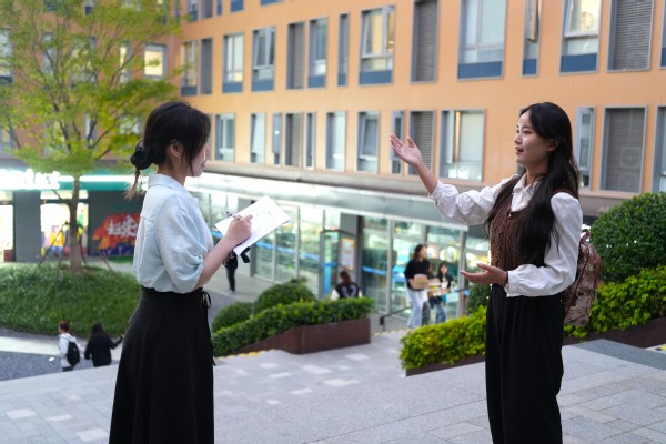 随后,参赛学生们按照抽签结果分成小组,依次前往国交楼、综合楼、图文信息中心和22号宿舍楼进行讲解。在这过程中,他们引导听众领略了美丽的校园风光,描绘了那些隐藏在日常角落中的细微景致,字里行间流露出对校园生活满满的幸福与满足。