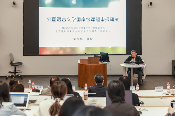 戴炜栋教授专业细致的讲授、深入浅出的剖析引起现场老师们的强烈共鸣。语言学习中心朱晓映主任、外语学院赵晓临院长现场请教了申报过程中的选题、填报方向定位等问题,戴教授给予了详尽和专业的指导与解答。参会教师受益匪浅。