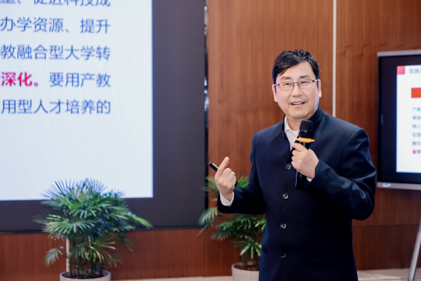 上海建桥学院校长朱瑞庭发表了题为《建设产教融合型大学,培养高素质应用技术型人才》的主旨报告。他深入剖析了产教深度融合对于应用型大学发展的重要性,呼吁业界与学界共同探索产教融合型大学的理论基础、逻辑框架与实践路径,以推动应用技术教育的深化与创新。