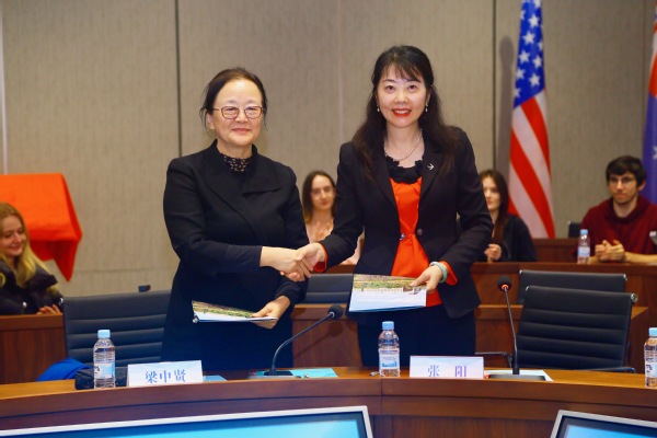 首先,梁副校长致欢迎辞。她对法国昂热高等商学院(ESSCA)师生代表团的到来表示热烈欢迎,并希望双方师生借此契机加强常态化沟通交流,在提升学生跨文化应用实践能力的基础上,为中法文明交流互鉴做出努力。