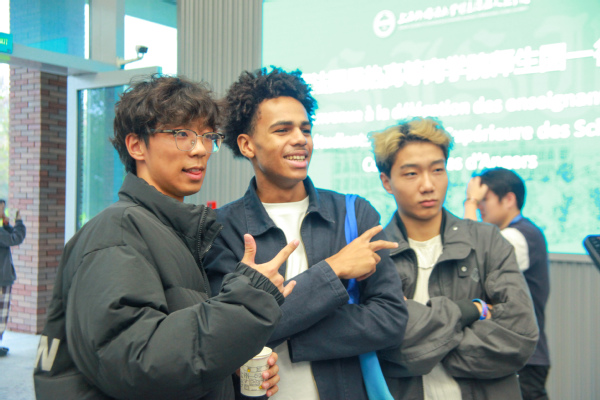 作为两校学生代表,国际交流学院2023级法语专业学生王冠翔、法国昂热高等商学院学生Louise BELLEGO、Romain DESPINASSE分别介绍了各自学校的基本情况与办学特色。同学们落落大方的表现,收获了现场师生的一致好评。