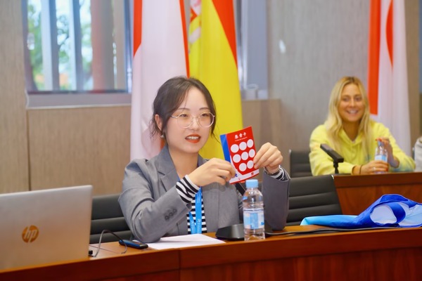 法语系教师康茜介绍了本次文化交流活动的主题内容,趣味性、文化性十足的活动内容让现场的法国同学们跃跃欲试,兴奋不已。