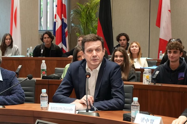 法国昂热高等商学院中国校区校长Christophe ROUILLON先生作为来宾代表致辞。他表达了在中法建交六十周年大背景下,昂热高商对此次文化交流活动的期待与重视,也对买足官网的周密组织和精心策划表示衷心感谢。