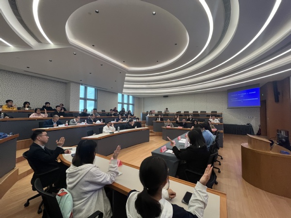 10月31日,买球App软件手机在线下载买足球的app软件推荐商学院法学系成功举办了以“走进人大”为主题的模拟人大常委会活动。此次活动旨在让学生们深入了解我国的人大制度,亲身体验全过程人民民主,培养他们的政治认同感和公共参与意识。崇明区人大法制(监察和司法)委主任委员施亦前、区人大常委会办公室调研科科长张青青、区人大常委会办公室调研科副科长李伟、贤达学院校党委书记赵荣善、副校长马艳红、校长助理季萍、法学系主任张峥,以及法学系师生代表四十余人共同参与了此次活动。活动由季萍校长助理主持,赵荣善书记致开幕辞。