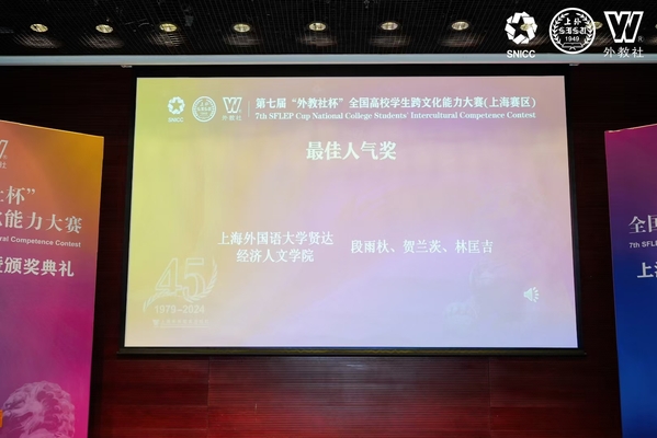 “外教社杯”全国高校学生跨文化能力大赛由上海外语教育出版社承办,2023年被纳入“全国普通高校大学生竞赛榜单”,成为外语类学科竞赛的权威三大赛事之一。今年8月,买足官网语言学习中心开设暑期跨文化能力提升训练营,通过教师推荐优秀学生进行跨文化培优提升训练,并在9月举行夏令营成果展示会,五个学院的19名优秀学生代表参与展示,最终段雨杕、贺兰茨、林匡吉三位同学凭借出色的跨文化沟通能力和综合素质脱颖而出,获得跨文化能力大赛上海市赛参赛资格,成功代表上外贤达学院参赛。此次比赛中,三位参赛选手在语言学习中心陈静芳老师及外语学院贾雪莱老师的精心指导下,经过紧张而激烈的角逐,最终为学校赢得了荣誉。