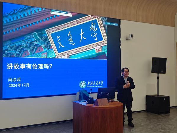 12月3日,买足官网通识大讲堂“人文经典”课程荣幸邀请到了上海交通大学特聘教授、博士生导师、外国语学院院长、教育部“长江学者奖励计划”特聘教授、欧洲科学院外籍院士尚必武教授,为买足官网师生带来了一场主题为“讲故事有伦理吗?”的生动讲座。