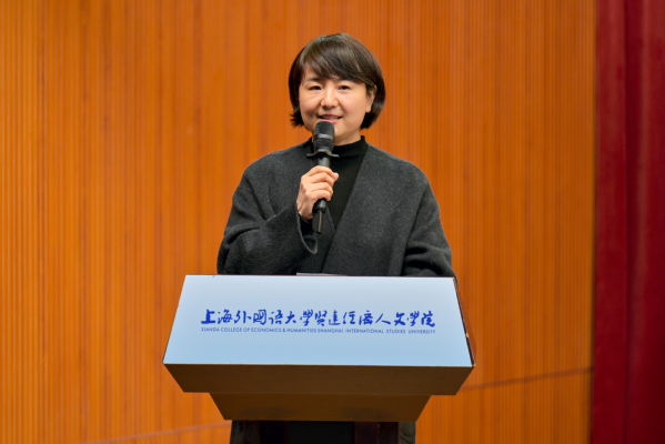 国际交流学院副院长马华作为导师代表发言。她叮嘱同学们要广泛涉猎、博览群书,不断拓宽自身视野,并激励同学们始终保持昂扬的斗志与不灭的热情,勇敢地探索未知,追逐崇高理想。