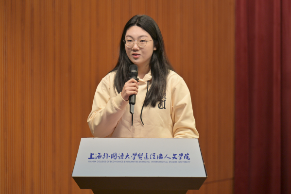来自商学院会计学(双语)22-2班的于航同学作为学生代表发言。她表示“英才培养实验计划”是一场意义非凡的成长之旅,同学们在系统的培养课程中感受学术魅力,在多元的实践活动中接触前沿动态,在这段旅程中积累的经验和力量将对未来的学习和发展产生深刻而久远的影响。