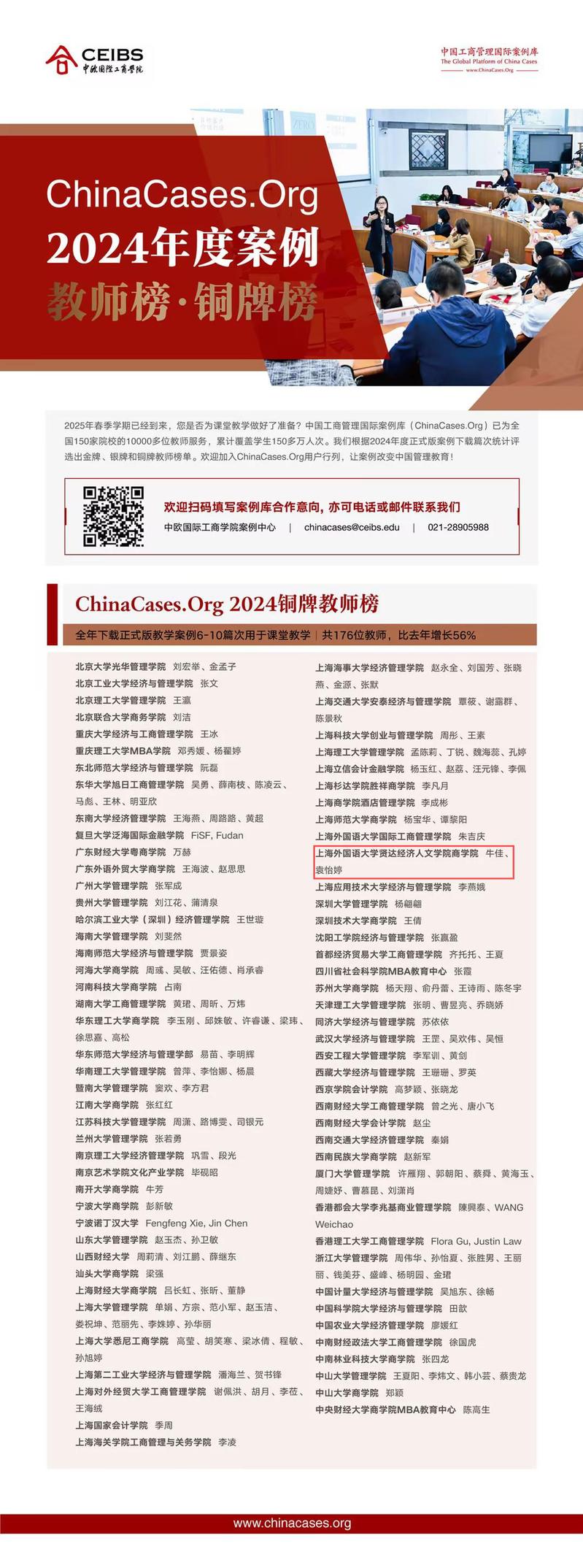 耿仟、牛佳老师和袁怡婷老师的入选,是对他们在案例研究与教学领域深耕细作的褒奖,更是商学院在案例教学领域多年来坚持创新与实践的有力见证。这一荣誉不仅代表着个人的成就,更象征着商学院在推动中国工商管理教育国际化进程中所发挥的积极作用。