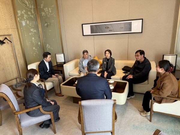 当日中午,双方举行见面会。上外贤达学院许星副校长、数字文旅学院潘皓波院长、秦禹权书记等相关人员出席。许星副校长介绍了考察目的,旨在深度考察酒店环境,为签订实习基地协议做准备。潘皓波院长介绍了数字赋能的学院办学特色,他分享了学院与携程集团、MSC 地中海邮轮公司等企业的直播合作成果,学院已建成两个专业直播间,培养 30 余名直播人才,并计划与上汽集团拓展直播领域。潘院长提出的校企直播合作构想,期望实现学生实践与酒店营销的双赢。