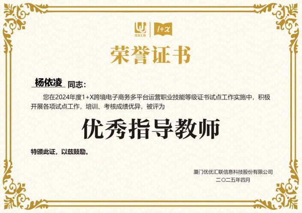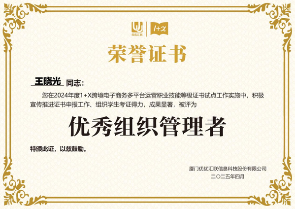 2024年在教育部1+X证书制度试点工作的深入推进下,凭借在跨境电子商务多平台运营领域的卓越表现,买足官网荣获2024年度“优秀试点院校”称号,商学院王晓光院长荣获“优秀组织管理者”,商学院教师耿仟、杨依凌老师获评“优秀指导老师”,以上荣誉不仅是对学生职业技能培养成效的肯定,更是对学校、学院教育教学改革成果的充分印证。
