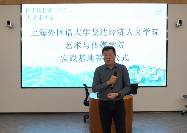 在上海市广告协会会长杜贵根、上外贤达学院副校长马艳红的见证下,上海市广告协会副秘书长邱珊珊、上海宝苑公共交通传媒有限公司总经理高明、艺术与传媒学院数字光线教研中心主任靳雄共同签署合作协议,标志着实践教学基地正式落地。