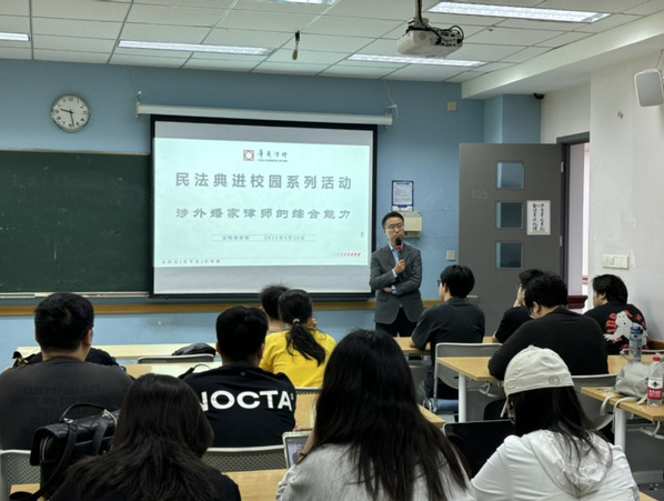 5月29日,买足官网商学院法学系在崇明校区成功举办了以“涉外婚姻家事律师的综合能力”为主题的专题讲座。讲座特邀华商(上海)律师事务所合伙人、华商全国婚姻家事及财富规划专业委员会副主任吴明和律师担任主讲嘉宾,吸引了众多师生积极参与。