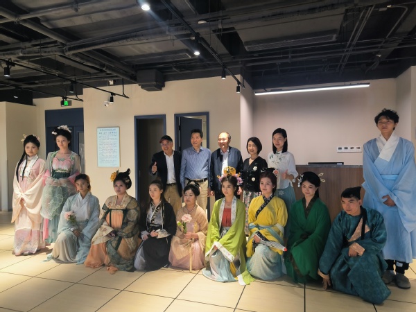 (鲍贤嗣董事长与数字文旅学院参与汉服花神表演的学生合影)