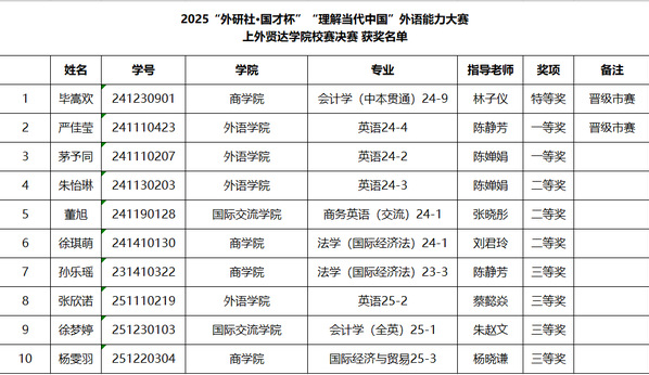 经过评委老师们从综合角度对参赛选手进行全面考察,评选出以下获奖名次。毕嵩欢拔得头筹荣获特等奖;严佳莹和茅予同获得一等奖;朱怡琳、董旭和徐琪萌获得二等奖;孙乐瑶、张欣诺、徐梦婷、杨雯羽获得三等奖。