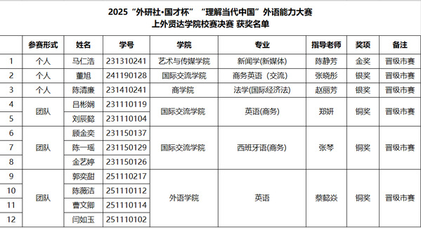 9月22日,2025“外研社·国才杯”“理解当代中国”全国大学生外语能力大赛上外贤达学院短视频赛项校赛已成功举办。此次短视频赛项的获奖选手也受邀来到演讲比赛现场观赛,并参加颁奖仪式,领取荣誉证书和奖品。